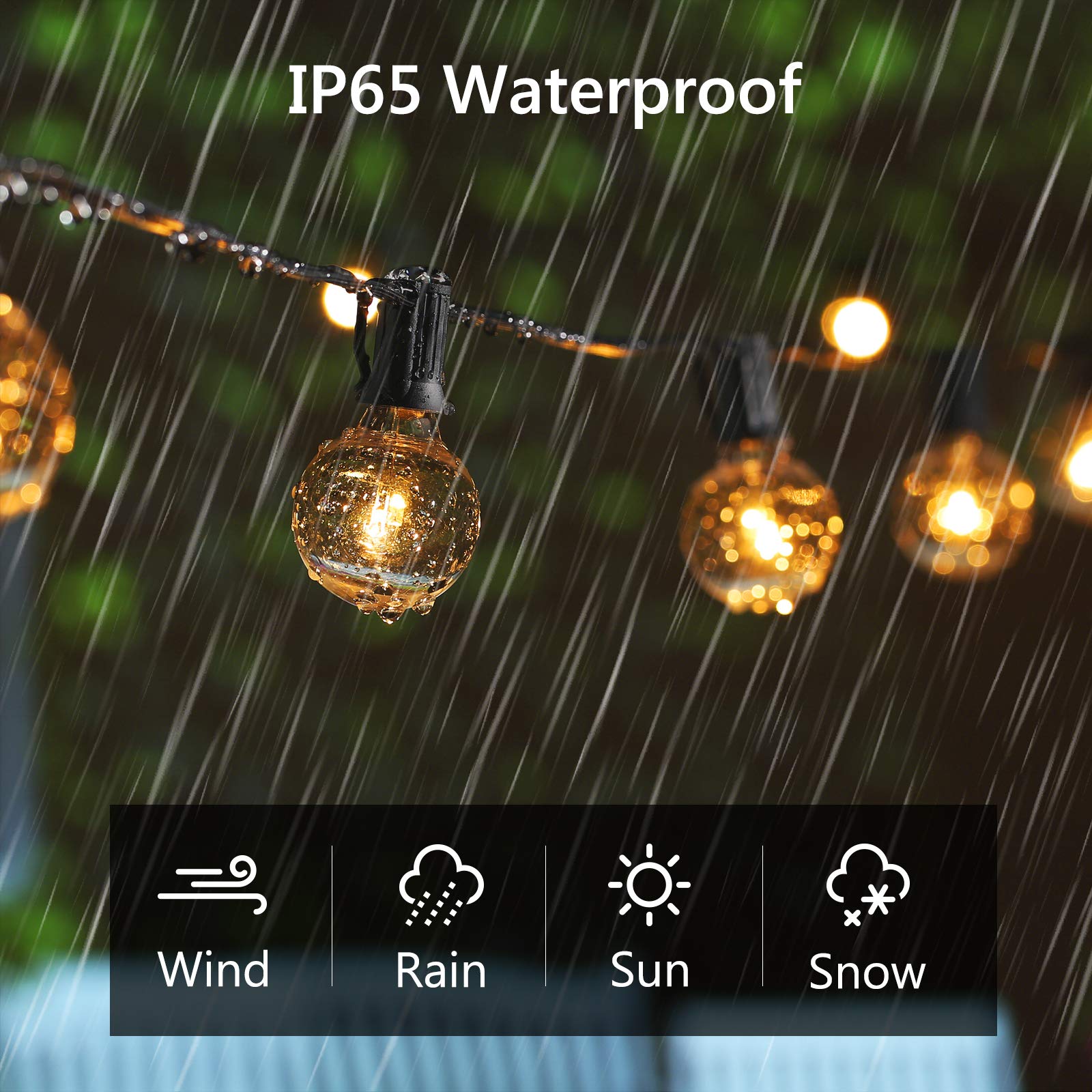 · 【Shatterproof and waterproof】G40 solar string lights are made of durable plastic with 2700K color temperature. Both the G40 lights and solar panels are shatterproof and IP65 waterproof and can withstand temperatures, rainy, windy, or damp climates.