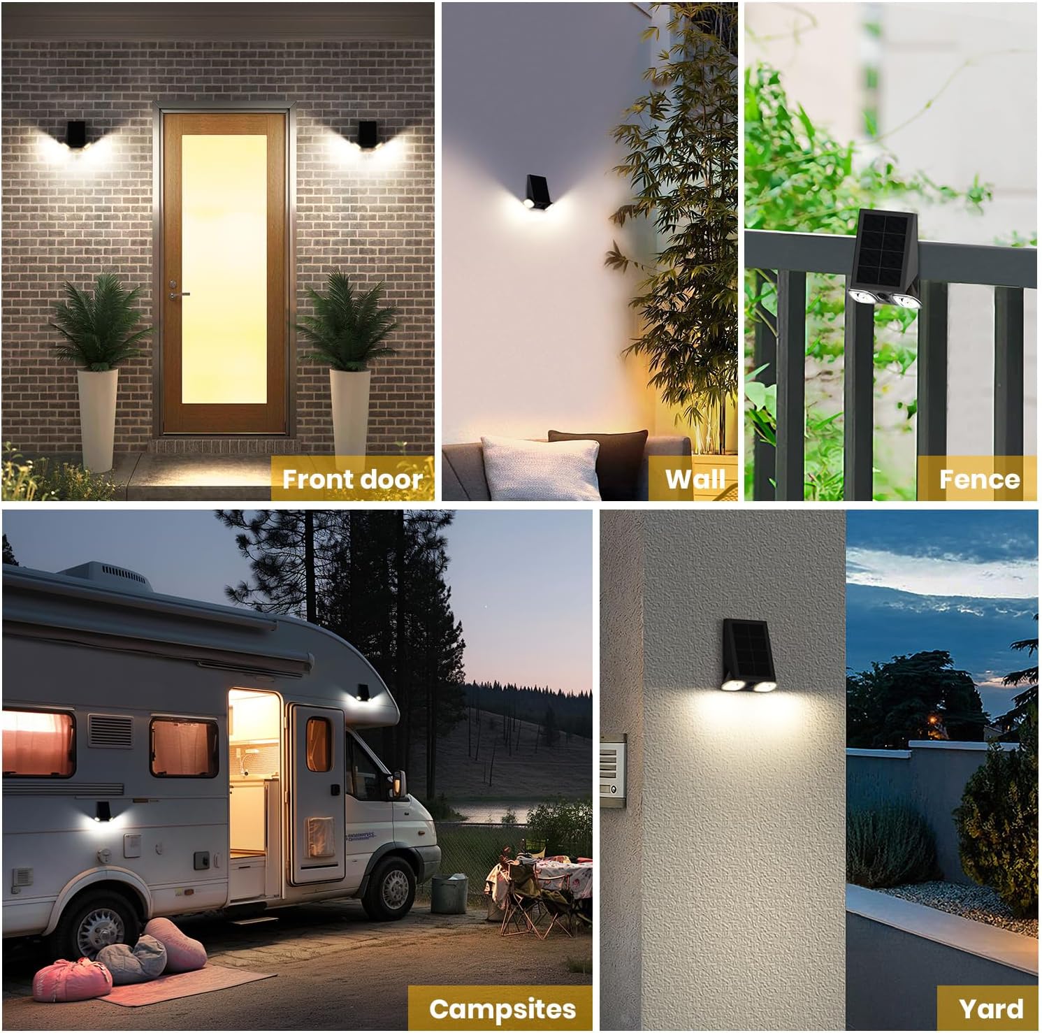 · Solar Power Light: Monocrystalline Silicone Solar Panel made of solar wall lights with larger surface area that can absorb sunlight much faster. By increasing the area and thickness of the installed solar panels, energy conversion efficiency up to 23%. Completely powered by solar energy, and no electricity bills.
